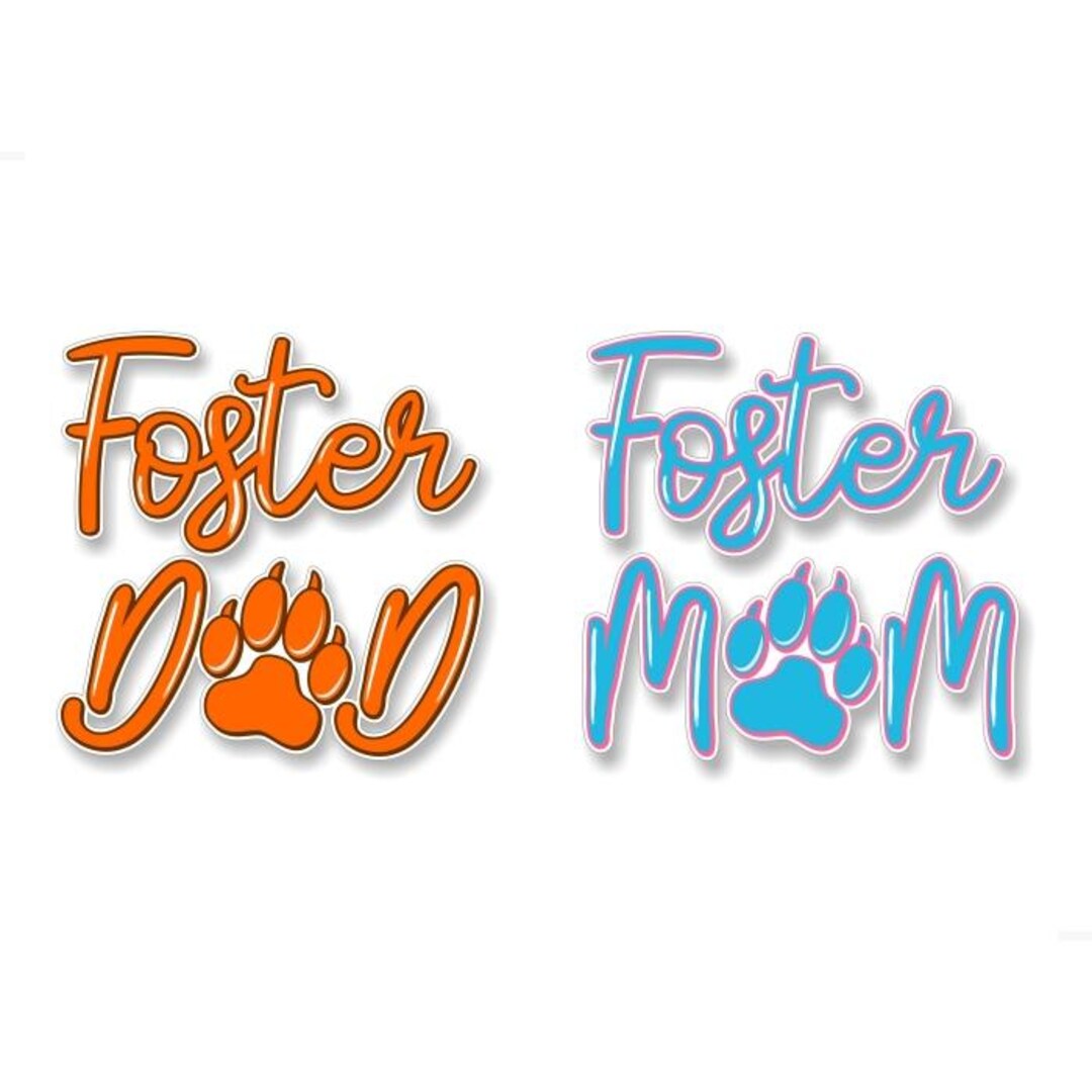 Foster Mom - Foster Dad Paw Print 5'' Script Decal Car Sticker Paw ...
