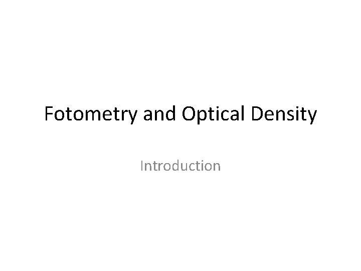 Fotometry and Optical Density Introduction Princip of Fotometer