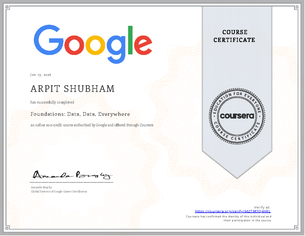 Foundations: Data, Data, Everywhere - Course Completion Certificate ...