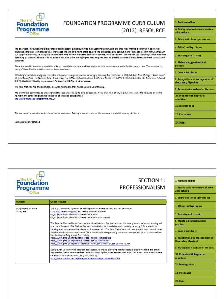 Foundation Programme Curriculum (2012) RESOURCE: Enquiries ...