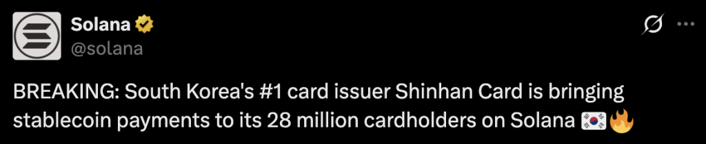 Shinhan Card Partners Solana Foundation to Pilot Stablecoin Payments
