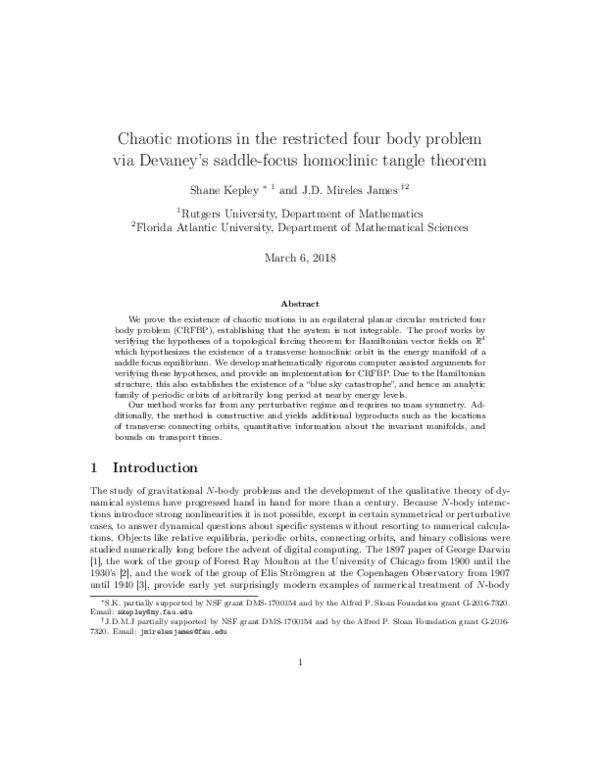 (PDF) Chaotic motions in the restricted four body problem via Devaney's ...