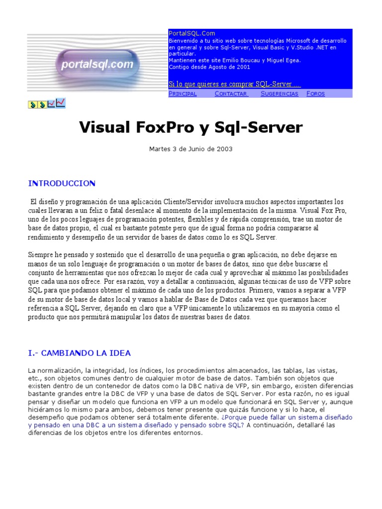 Visual FoxPro y Sql-Server | PDF | Servidor SQL de Microsoft | SQL