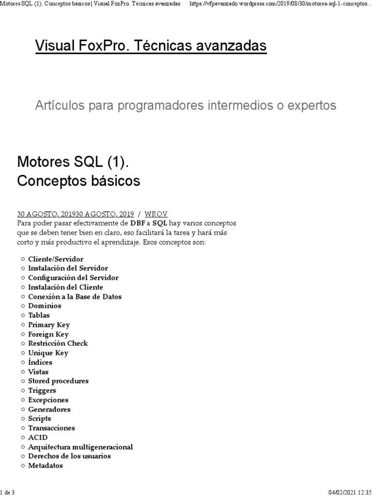 Motores SQL (1) - Conceptos Básicos Visual FoxPro. Técnicas Avanzadas ...