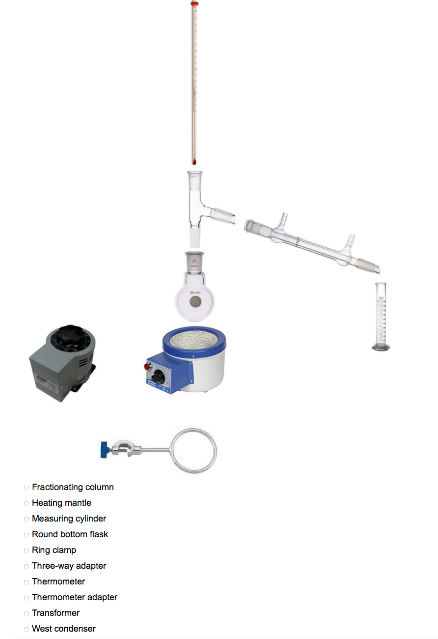 Solved O Fractionating column Heating mantle Measuring | Chegg.com