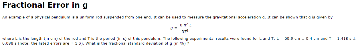 Solved Fractional Error in g An example of a physical | Chegg.com
