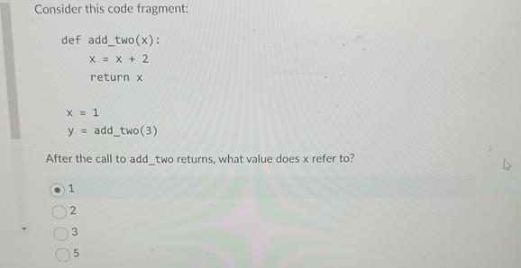 Solved Consider this code fragment: def addtwo (x) : x=x+2 | Chegg.com