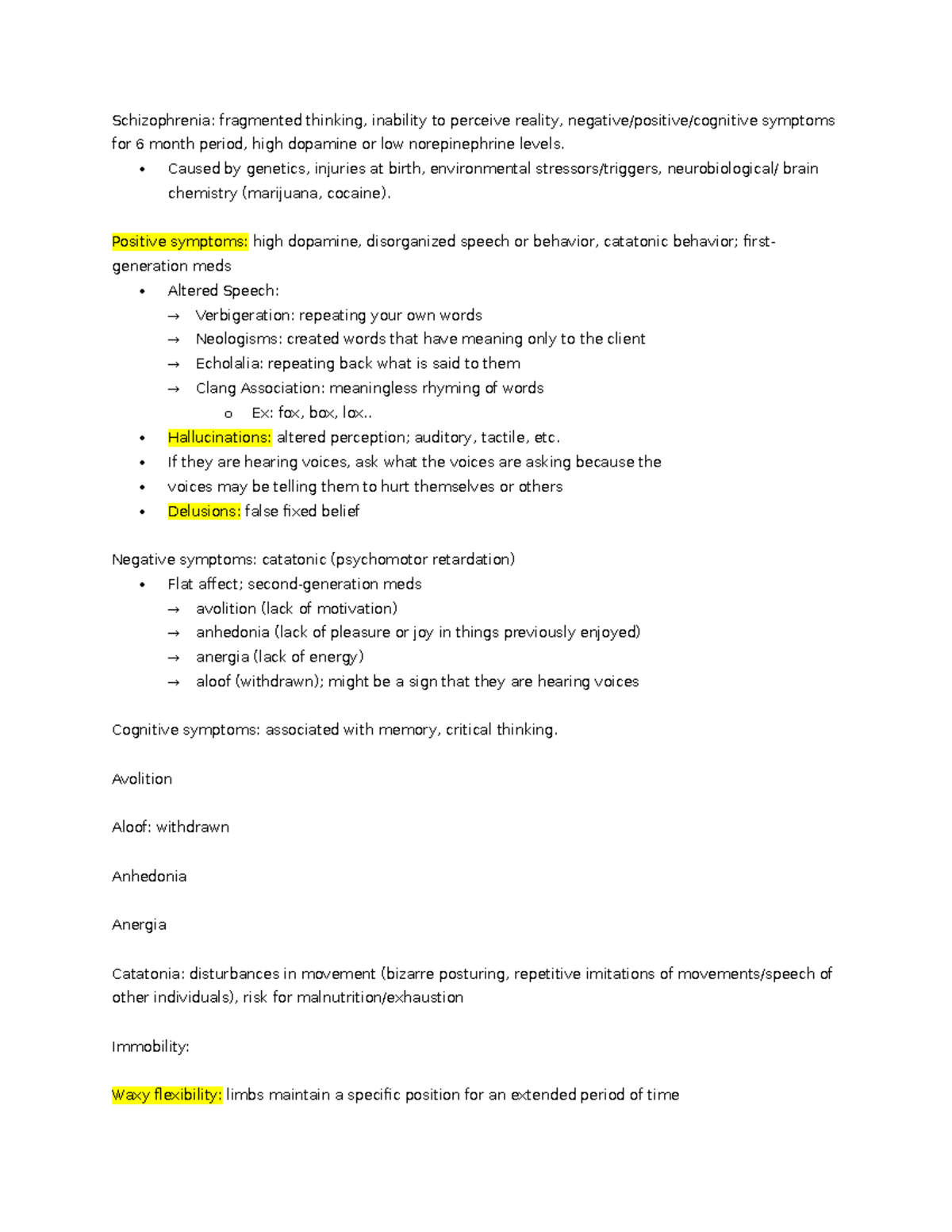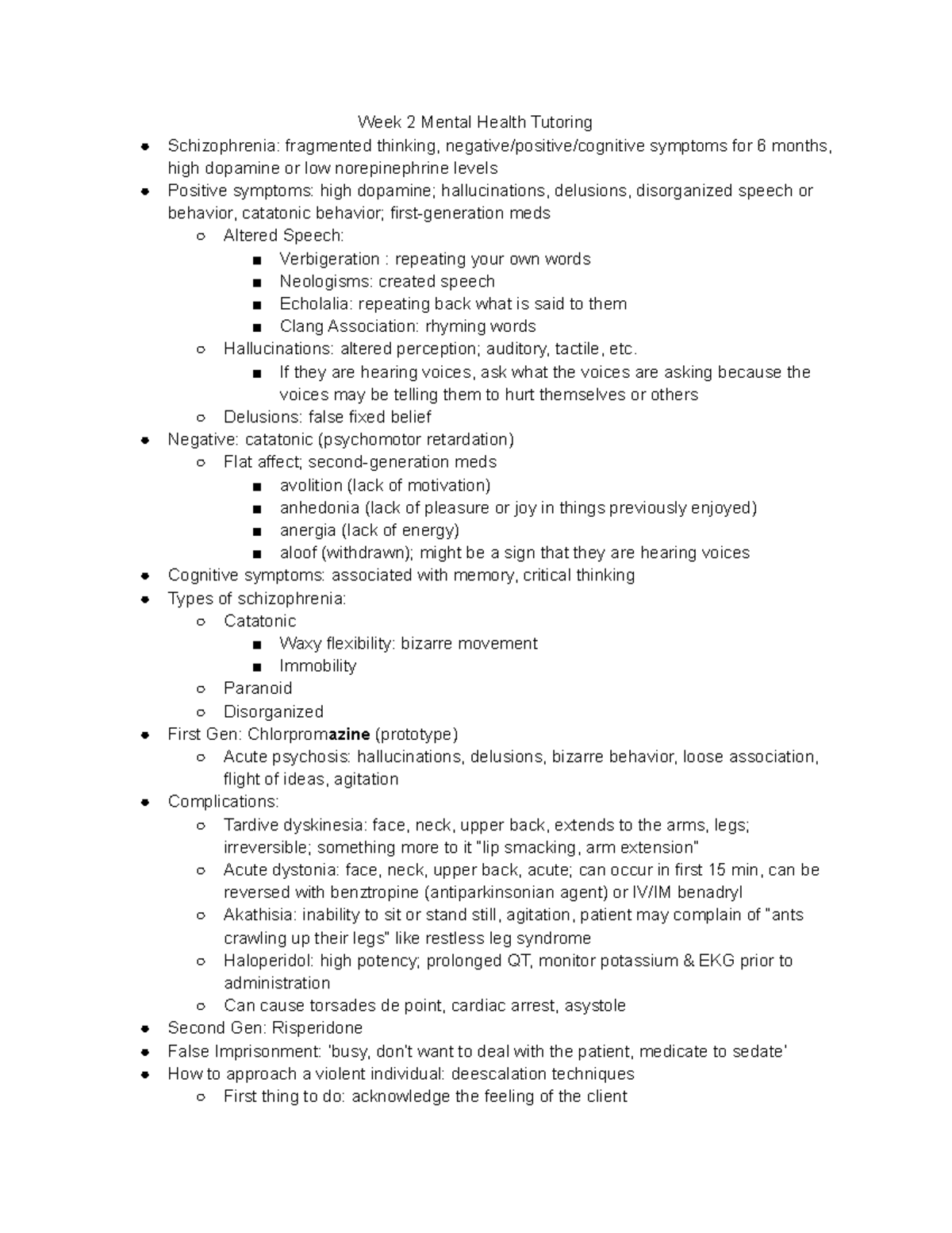 Mental Health Wk2 - notes - Schizophrenia: fragmented thinking ...