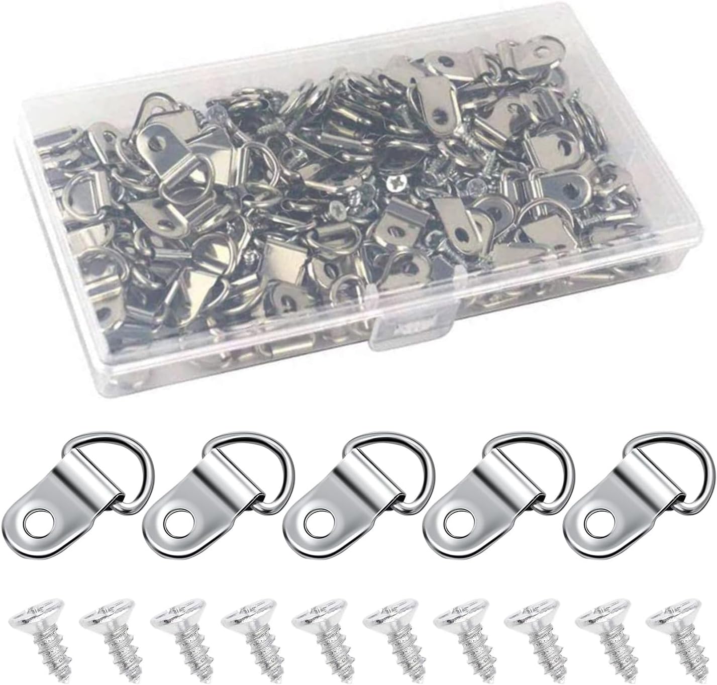Rustark 110Pcs Silver Metal D Ring Picture Hangers Frame Hanging ...