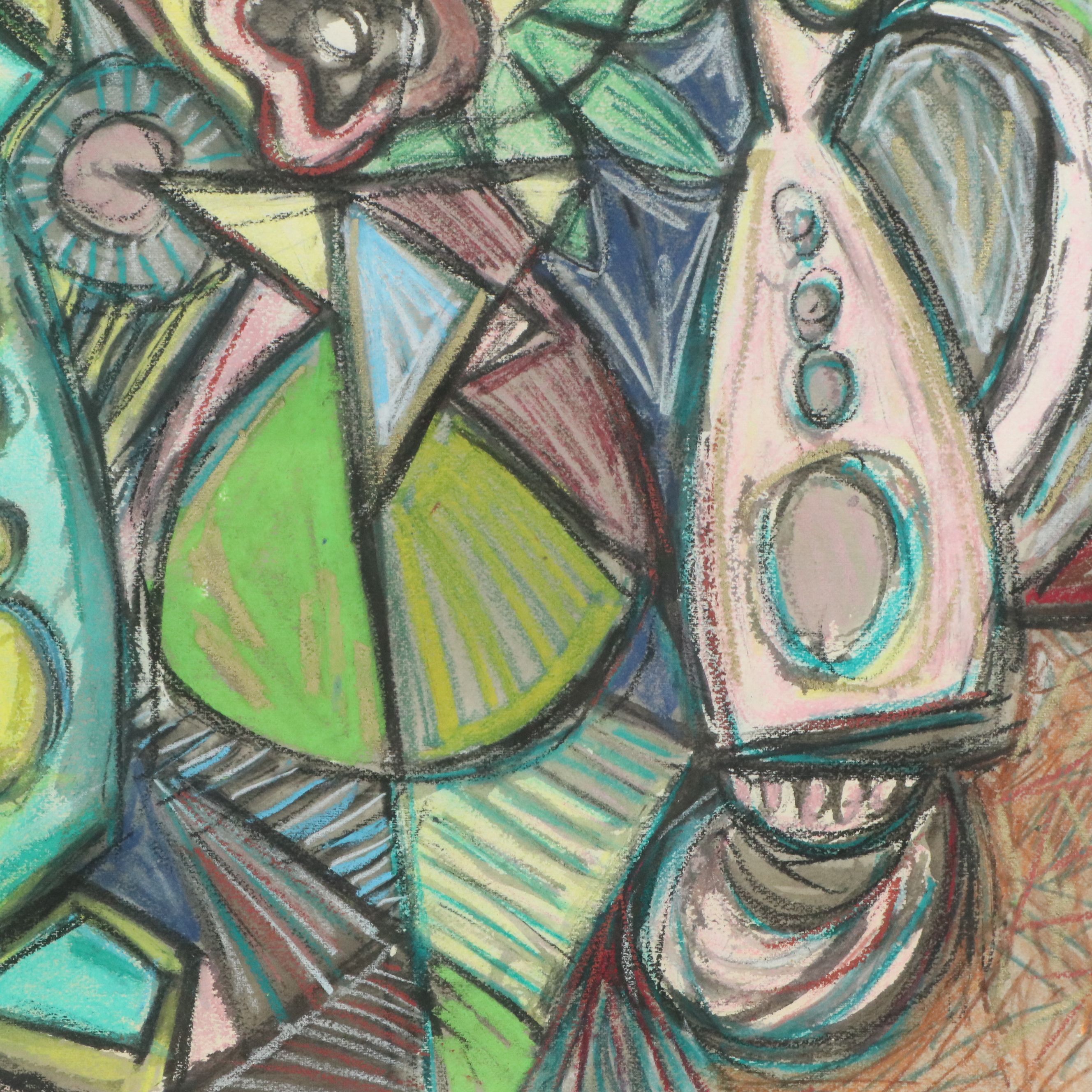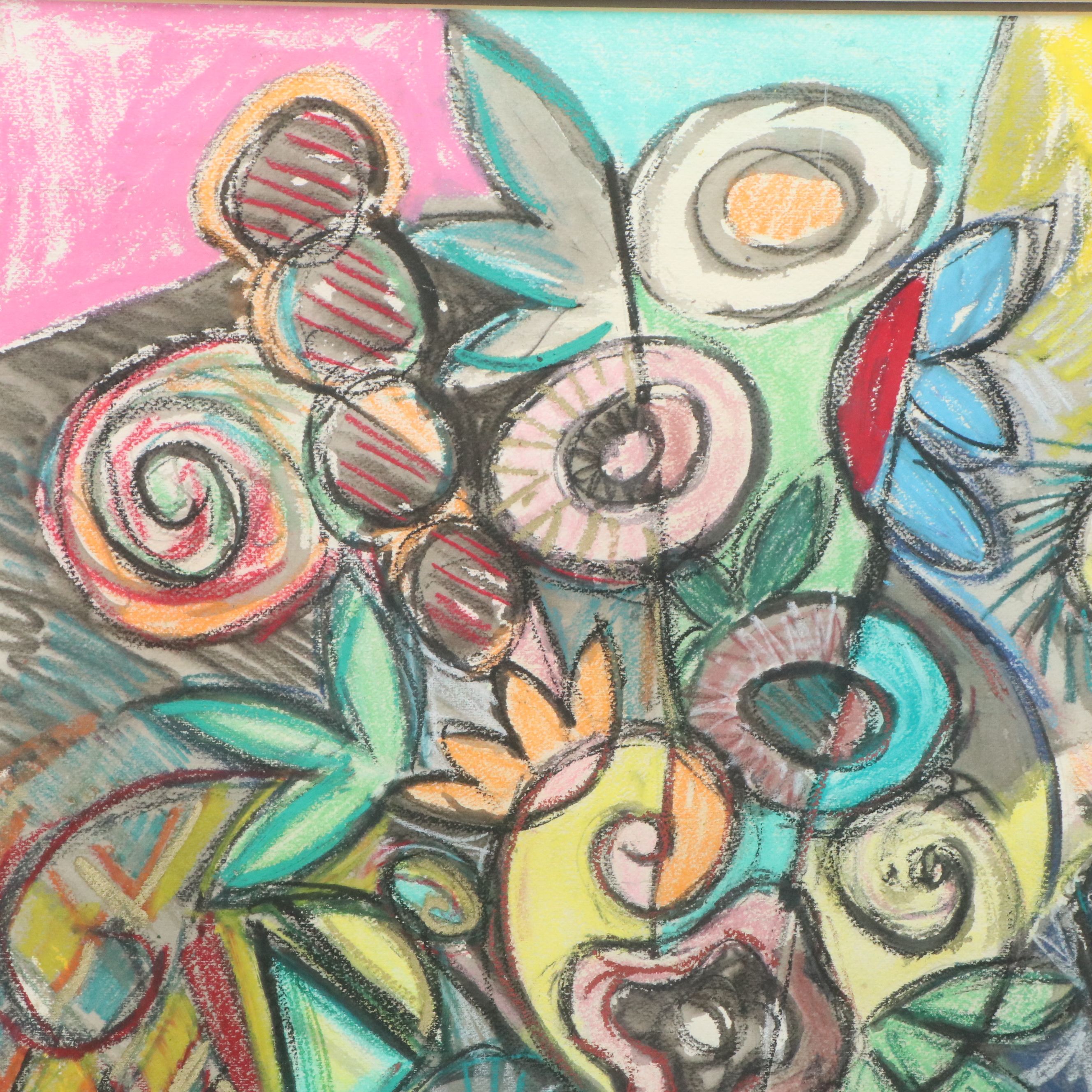 Cubist Style Floral Still Life Pastel Drawing, Circa 1991 | EBTH