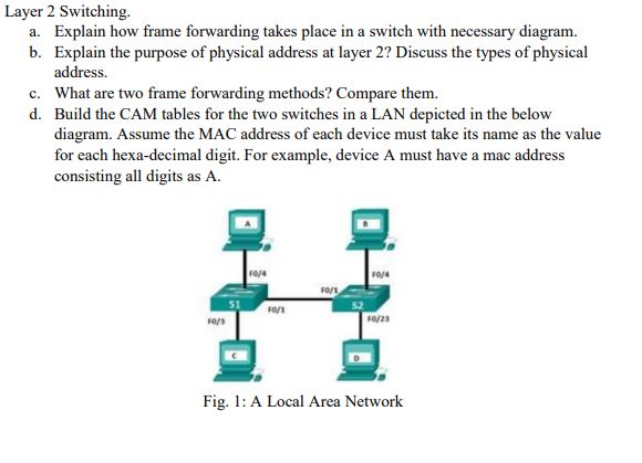 Layer 2 Switching. a. Explain how frame forwarding | Chegg.com