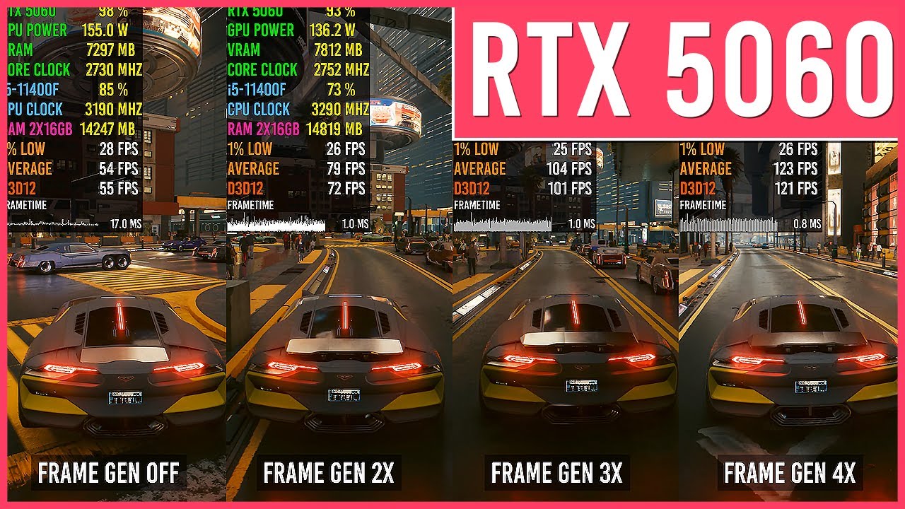 RTX 5060 | Frame Gen OFF vs 2X vs 3X vs 4X | Cyberpunk 2077 (4k) - YouTube