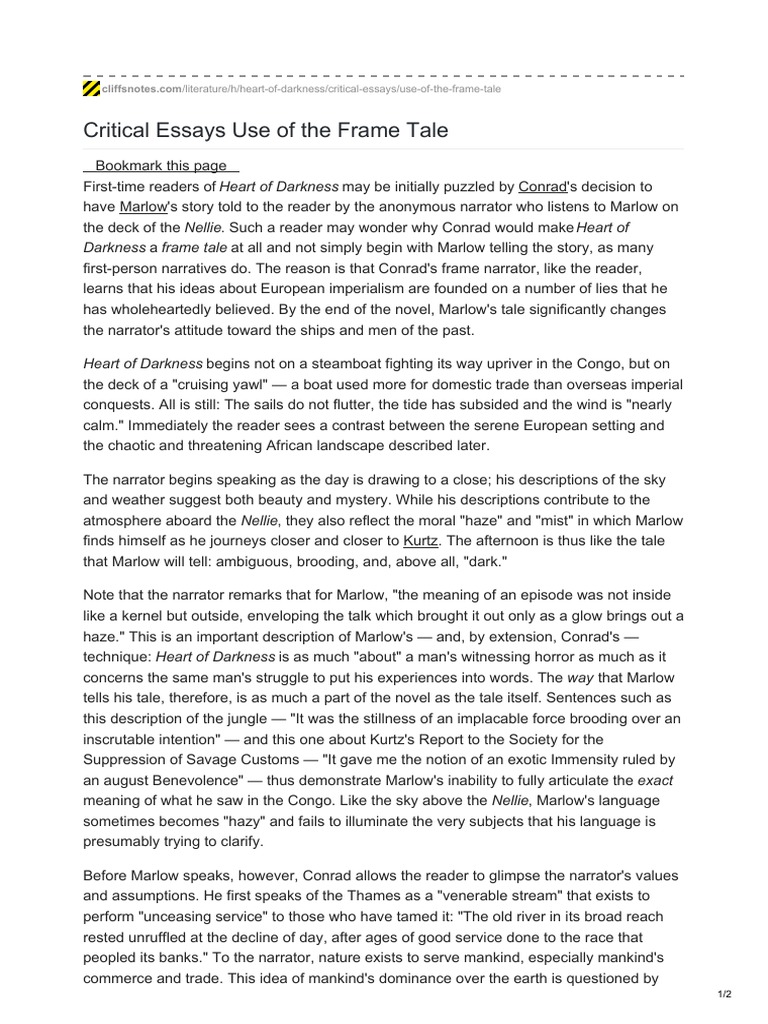 Critical Essays Use of The Frame Tale | PDF | Heart Of Darkness