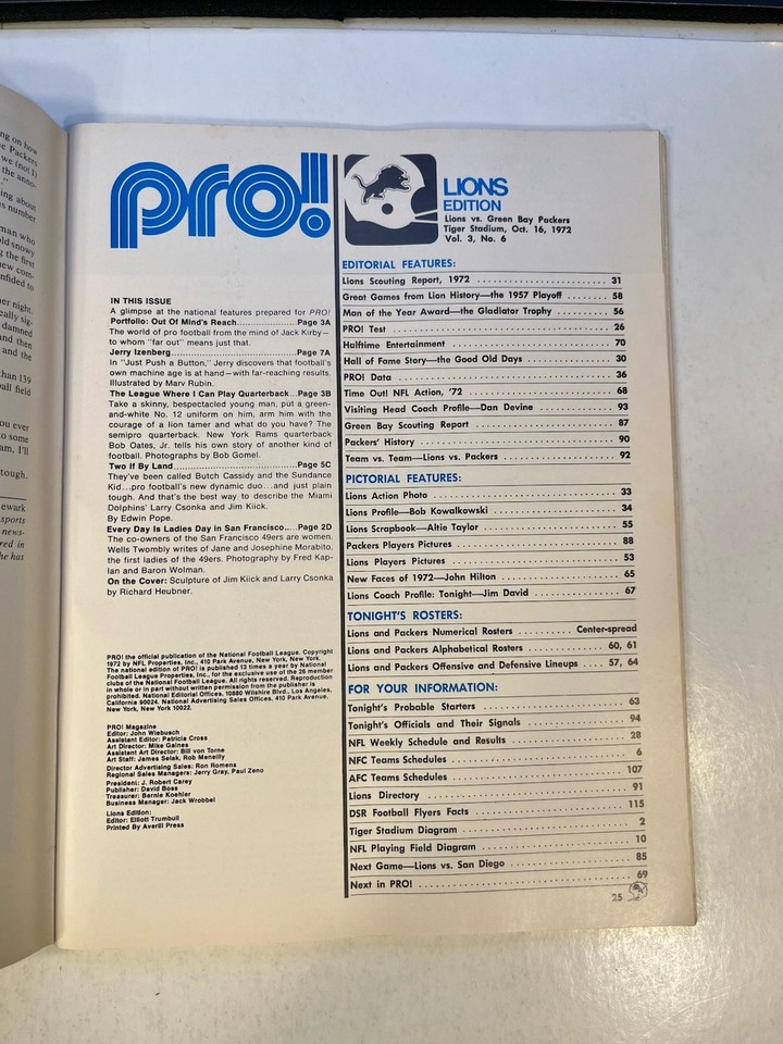 1972 Green Bay Packers vs Detroit Lions Program-Excellent Plus ...