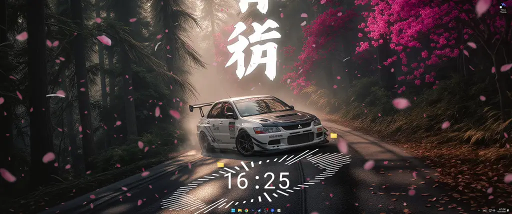 Live wallpaper Sakura and Mitsubishi Lancer Evo download on VSThemes.org