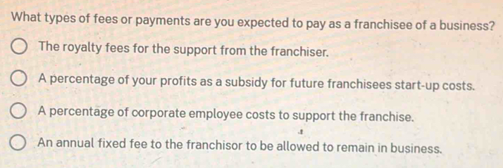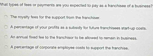 Solved: What types of fees or payments are you expected to pay as a ...