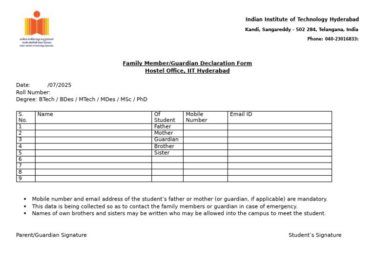 Student Hostel Declaration Form | PDF | Government