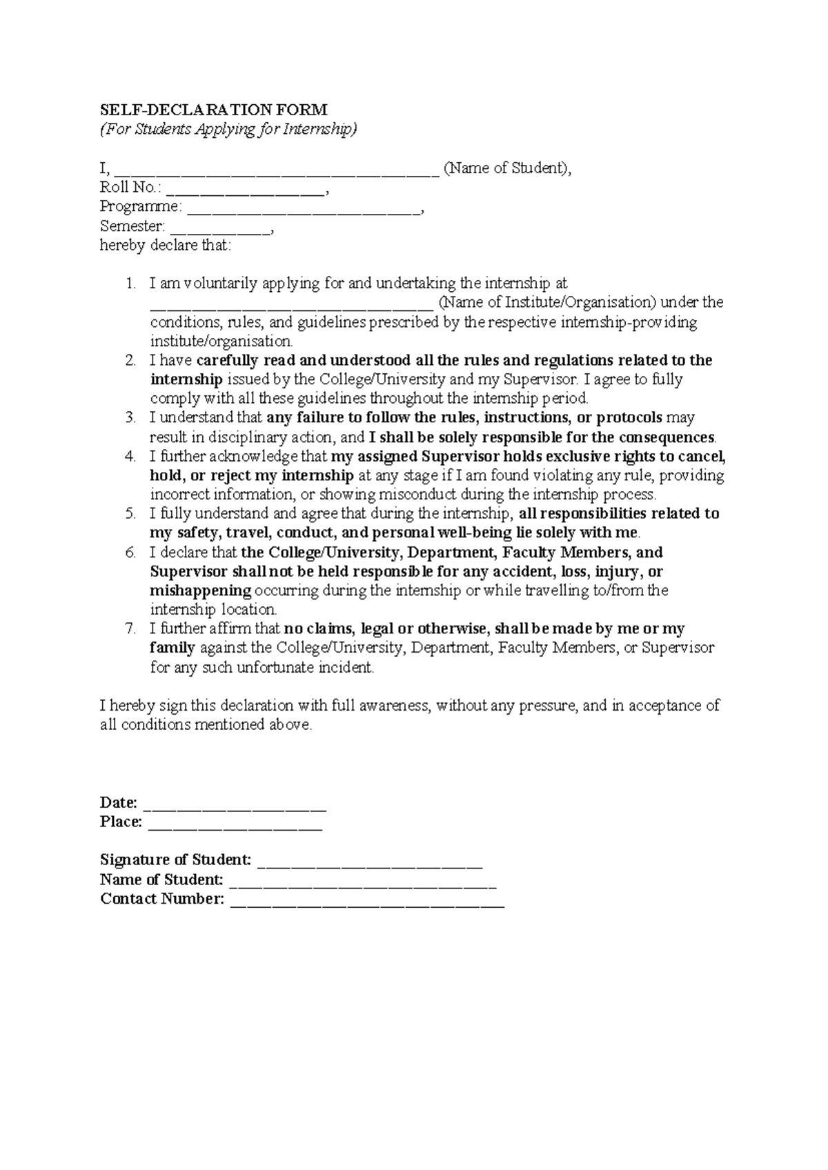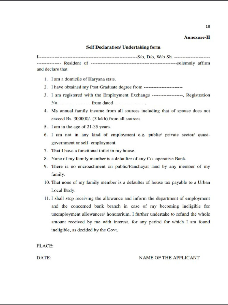 Self Declaration Form | PDF