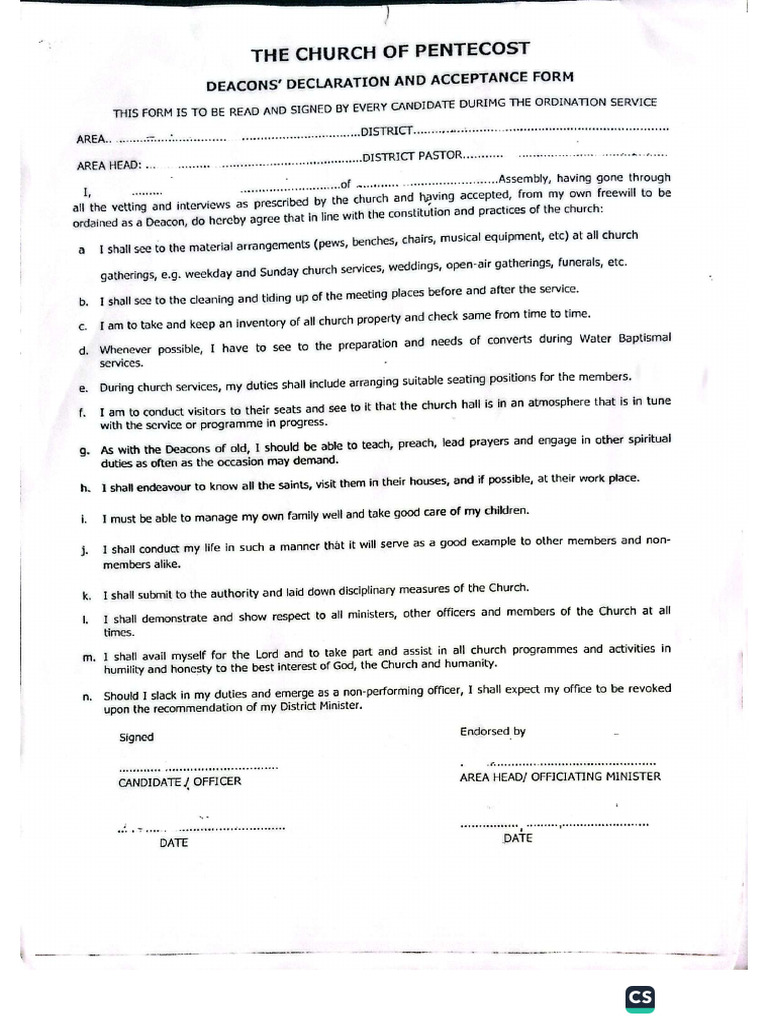 Declaration Form, Deacons | PDF
