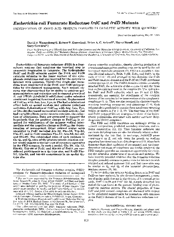 (PDF) Escherichia coli fumarate reductase frdC and frdD mutants ...