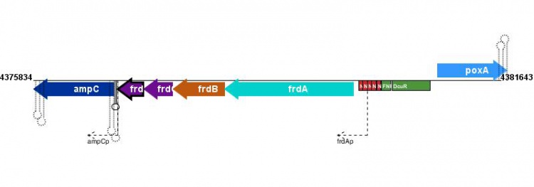 Location of genes that code for fumarate reductase subunits (frdABC) in ...