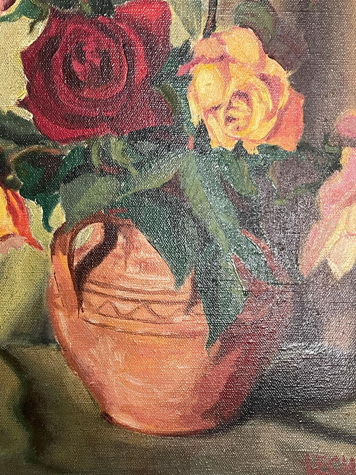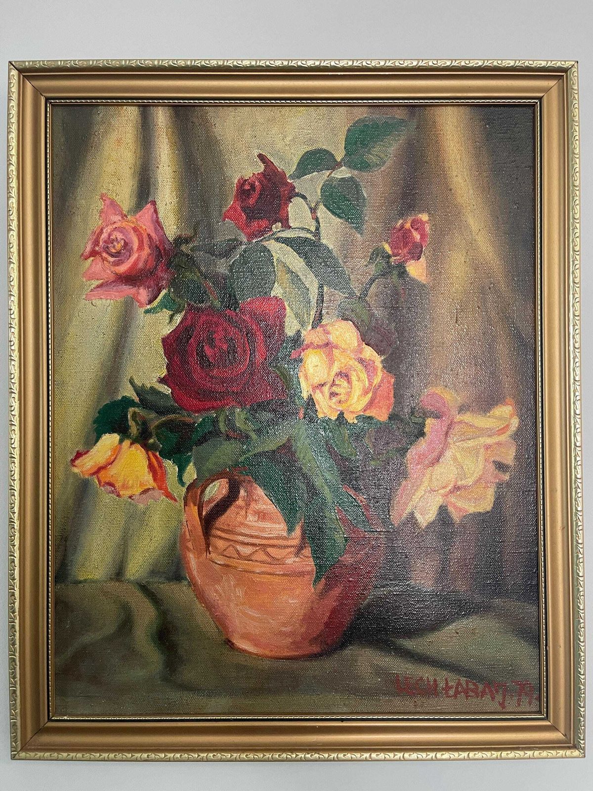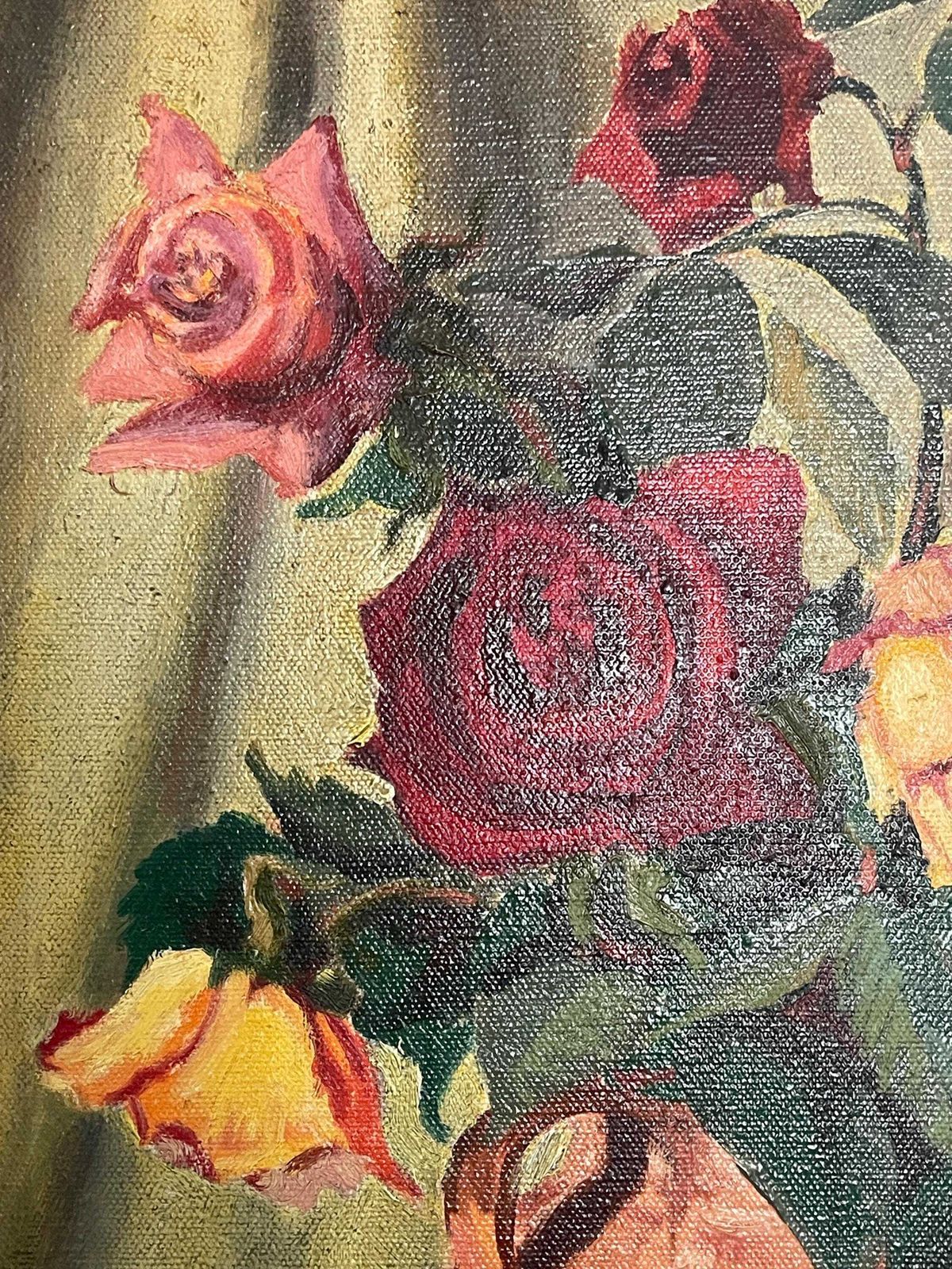 Vintage Framed Still Life Oil Painting Of Roses. | Vinterior