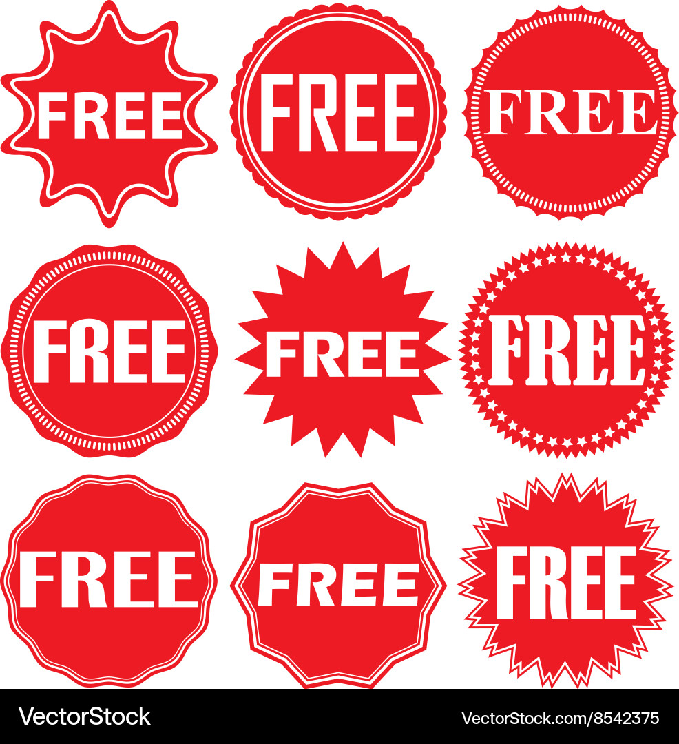 Free Sticker Sign, 100 Free Icon, Free Vector Sticker, Red Free Badge ...