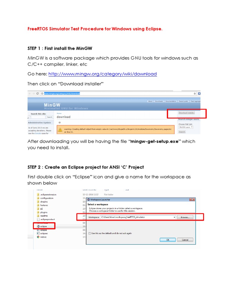 Step 1: First Install The Mingw: Freertos Simulator Test Procedure For ...