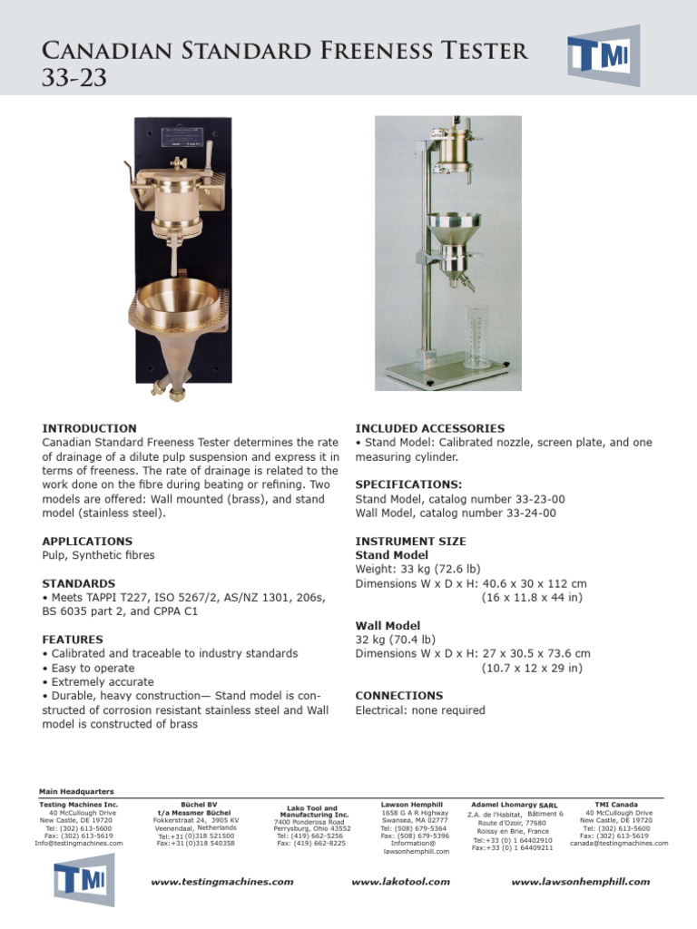 Professional Canadian Standard Freeness Tester - TAPPI T227 ISO 5267