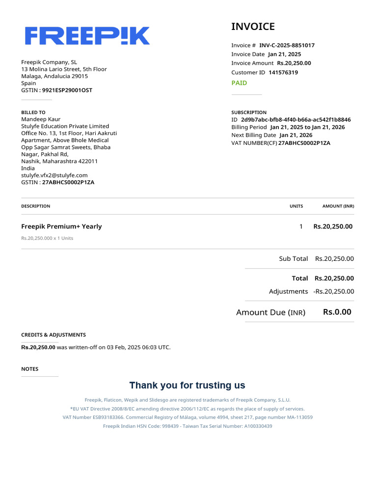 Freepik Invoice