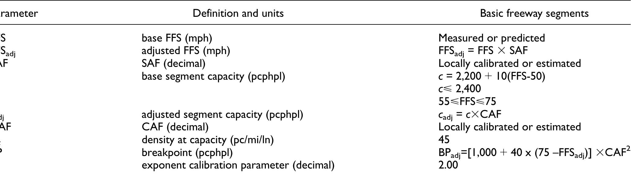 Parameters for speed—flow curves for basic freeway segments
