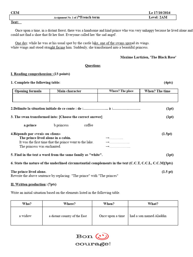 French Assignment No. 1 of The 2nd Term. (2019-2020) - (2AS Letters ...