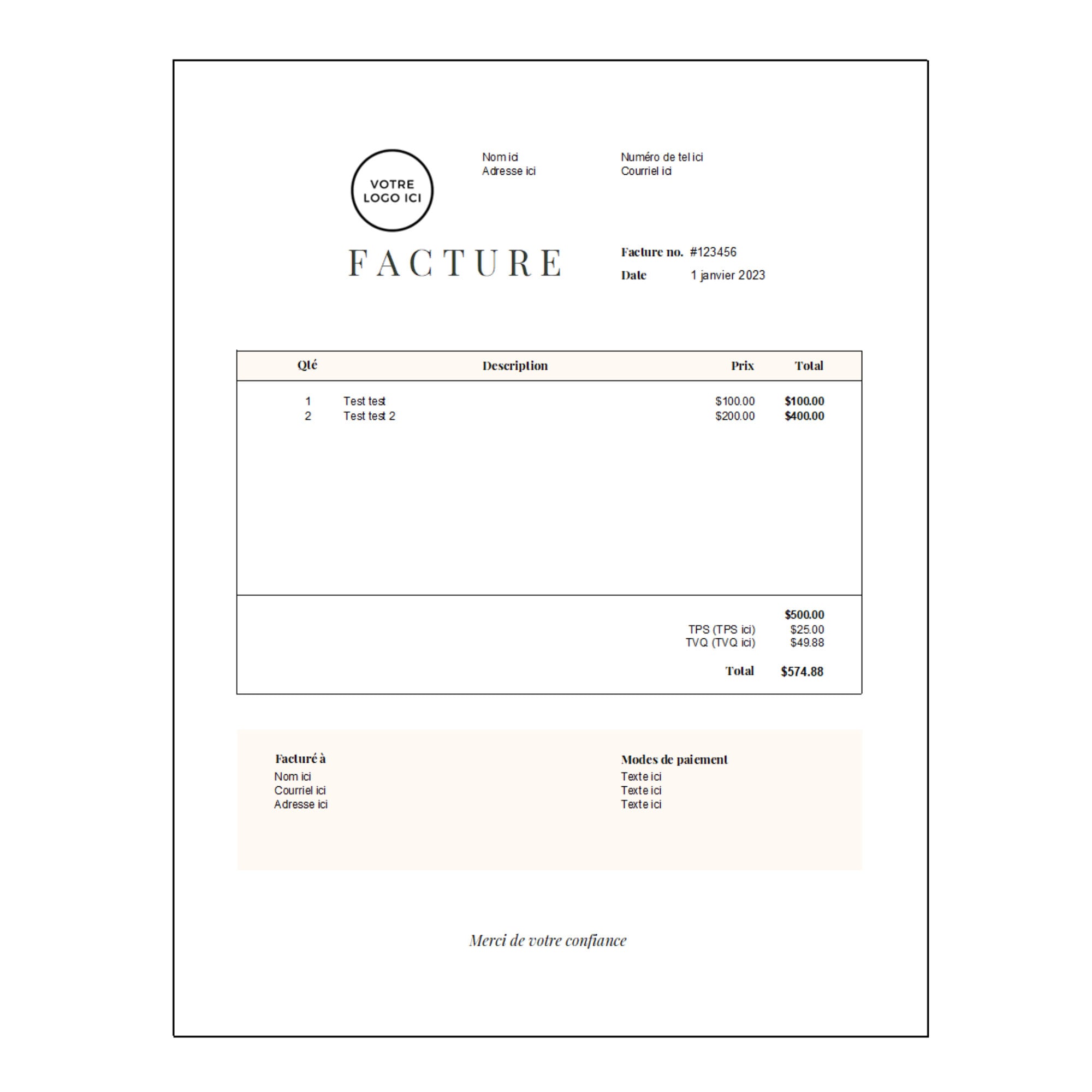 French Invoice Template With Automated Tax Calculation quebec Version ...