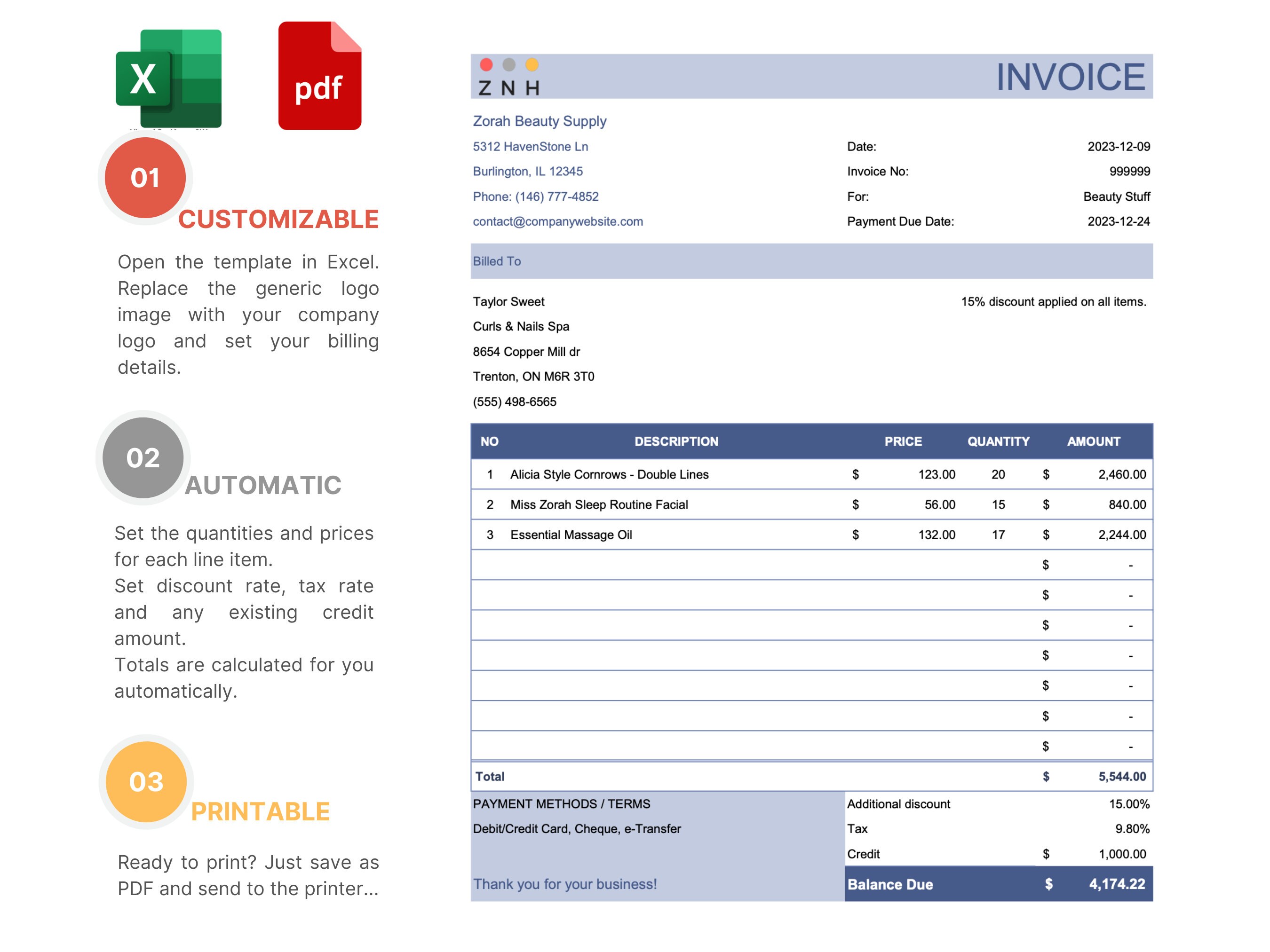 Bundle of 4 Fillable Excel Invoice Templates PDF Print Friendly French ...
