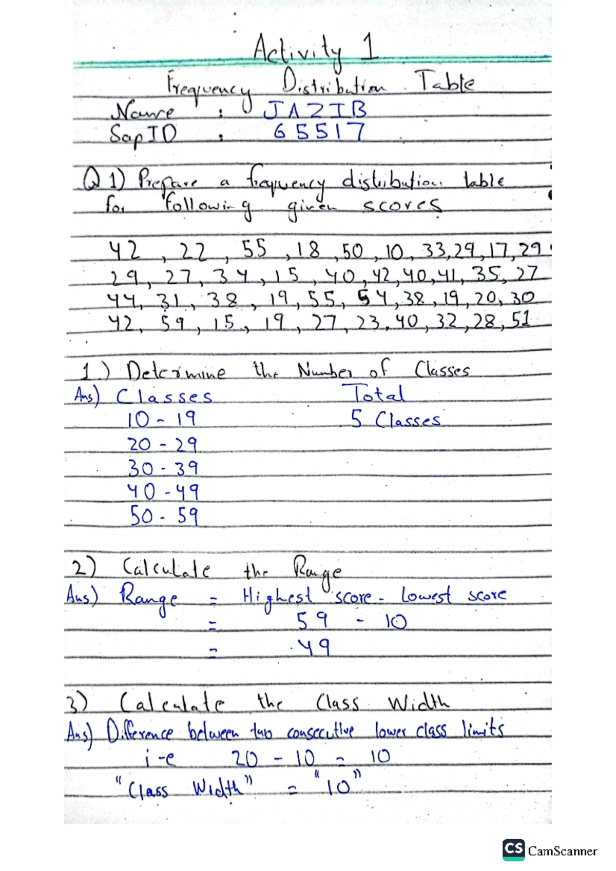Frequency Distribution Assignment: Analysis of Student Scores - Studocu