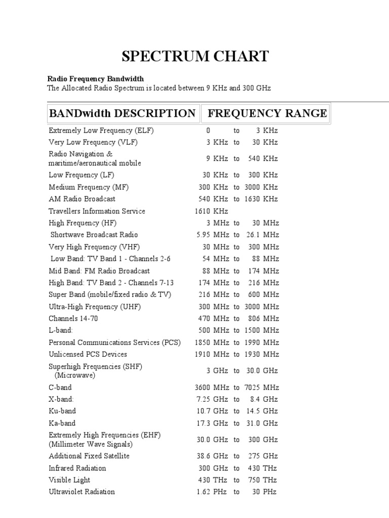 Radio Frequency Chart Fcc