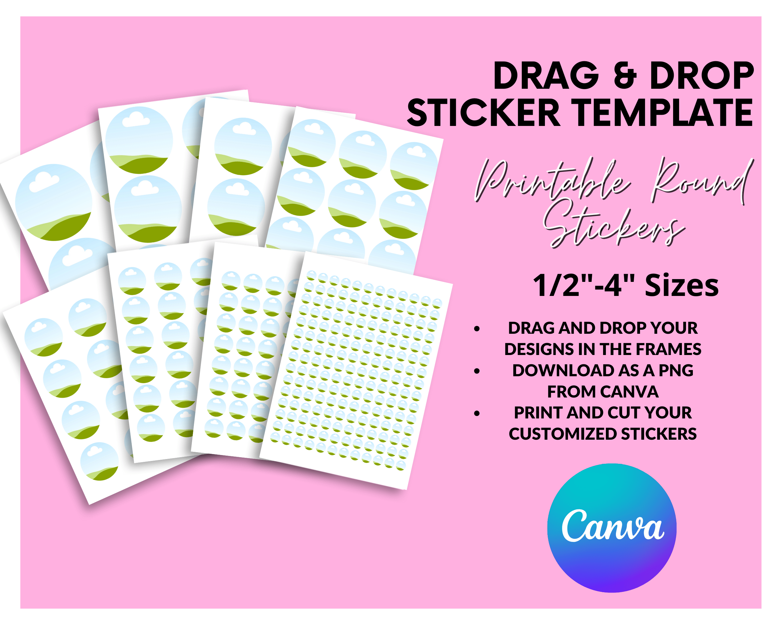 Drag & Drop Sticker Template/ Printable Round Sticker Canva Template ...