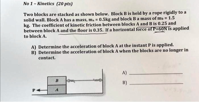 No1-Kinetics(20pts) Two blocks are stacked as shown below. Block B is ...