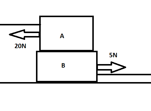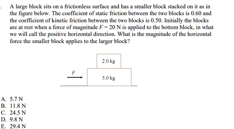 SOLVED: Two blocks (top block is 5 kg, bottom block is 15 kg) stacked ...
