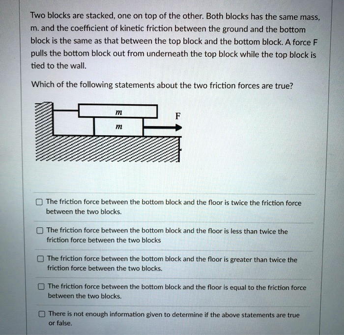 SOLVED: Two blocks are stacked on a table. The friction coefficient ...