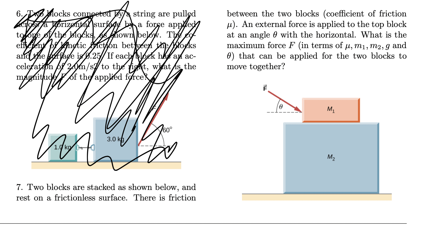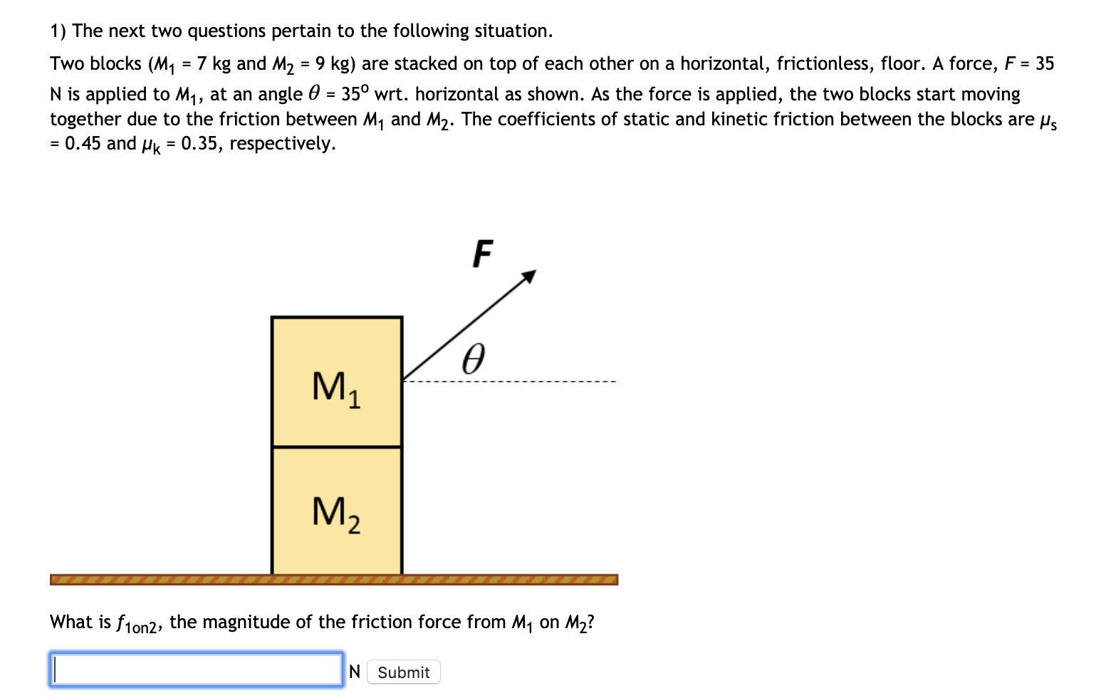 Find force and coefficient of friction between 2 stacked blocks in ...