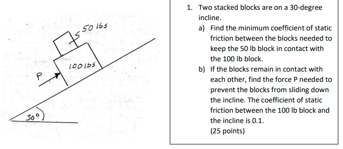 Solved 50lbs 100155 1. Two stacked blocks are on a 30-degree | Chegg.com
