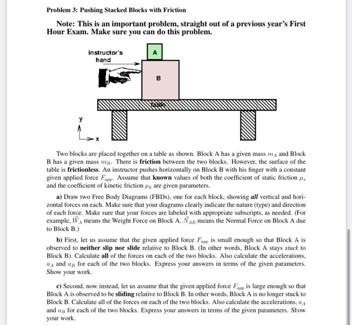 Solved Problem 3: Pushing Stacked Blocks with Friction Note: | Chegg.com