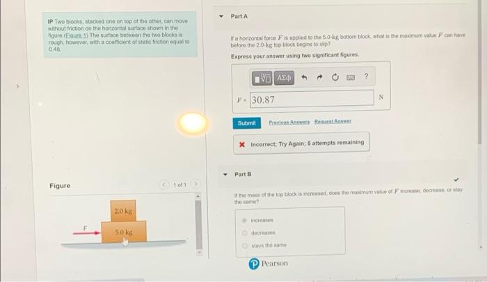 Solved T o blocks are stacked as show below, and est on a | Chegg.com