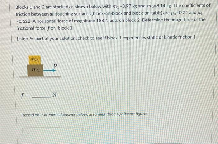 Solved Blocks 1 and 2 are stacked as shown below with | Chegg.com