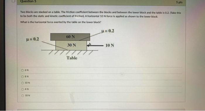 Solved Question 5 5 pts Two blocks are stacked on a table. | Chegg.com