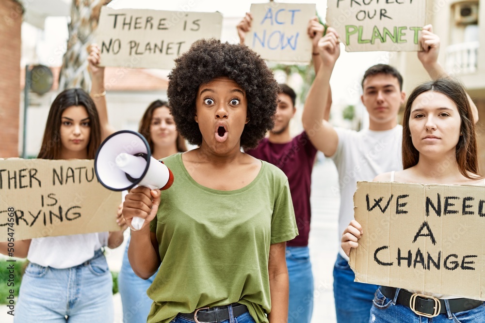 Group Young Friends Protesting Giving Slogans Stock Photo 2165970881 ...