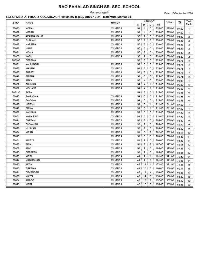 Xii Med. A, Frog & Cockroach (10.09.2024) | PDF