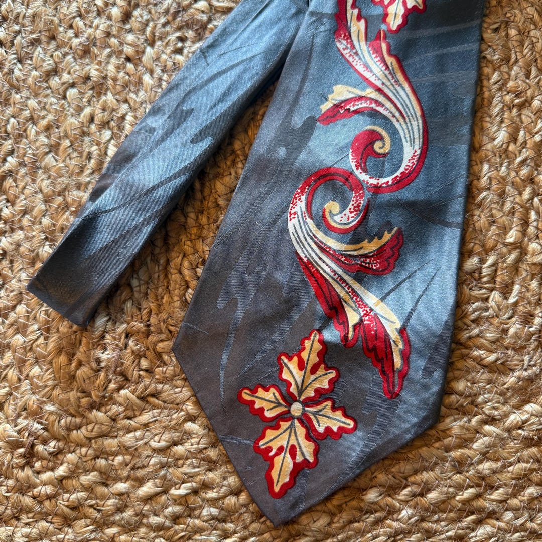 1950s Dusty Blue/red/gold Leaves + Fronds Pattern Men's Extra Wide ...