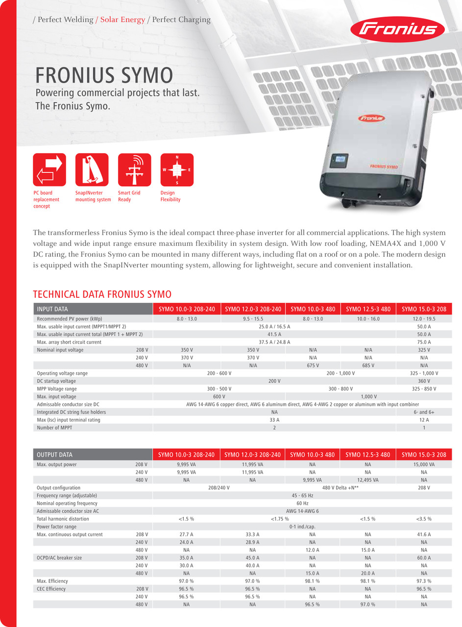 Fronius | Symo 3-20kW | Solar Inverter Datasheet | ENF Inverter Directory